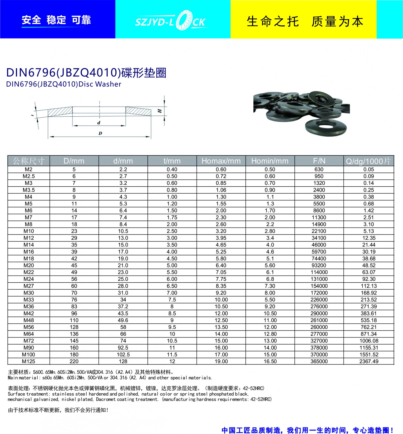 制造執(zhí)行標(biāo)準(zhǔn):符合DIN6796標(biāo)準(zhǔn)。規(guī)格:M2-M125型號(hào),也可提供訂制服務(wù)主要材質(zhì)有SUS304.SUS316.SUS630.SUS631,彈性硬化拋光處理!