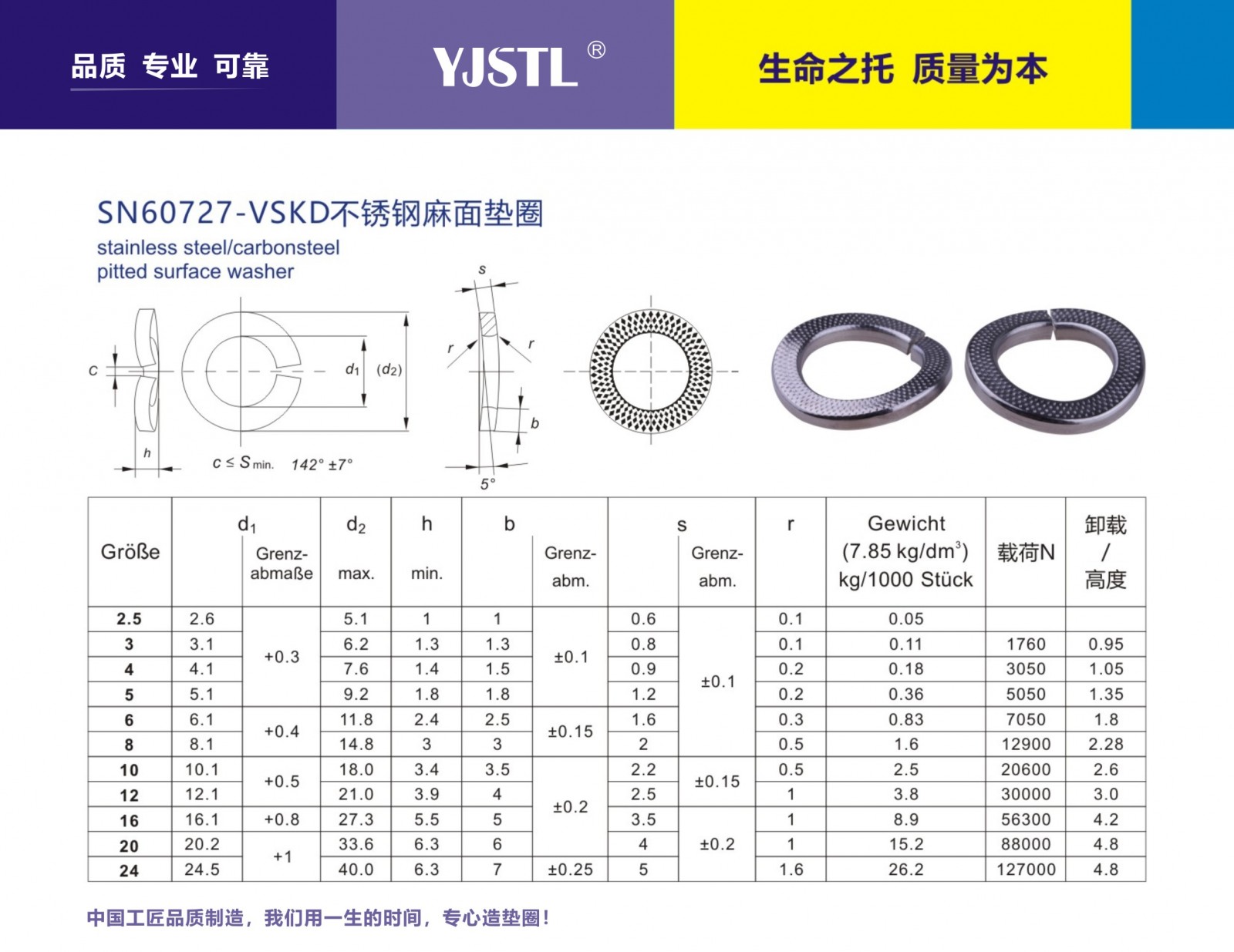 SN60727-VSKD墊圈由西門子軌道交通公司設(shè)計、基于張力摩擦的構(gòu)造原理。鞍形彈性墊圈麻面花紋與螺栓鎖緊面接觸,可增加摩擦力與鎖緊效果!