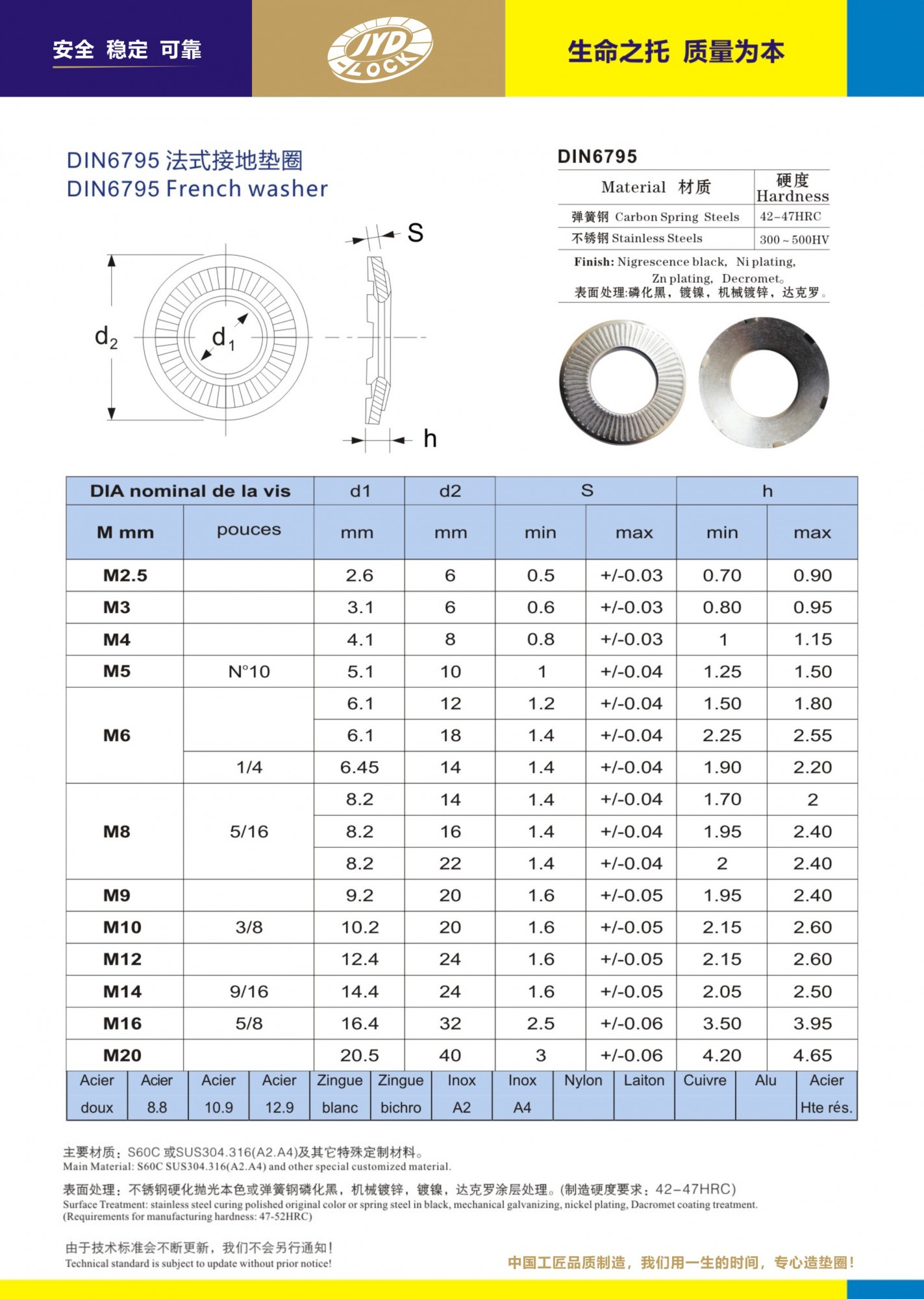 DIN6795是德國標(biāo)準(zhǔn)、法式鎖緊接地墊圈是碟形墊圈改良設(shè)計、表面條紋增加了防松作用。背面設(shè)計六爪形剌破功能!主要配合螺栓螺釘擰緊時剌破金屬基體表面!