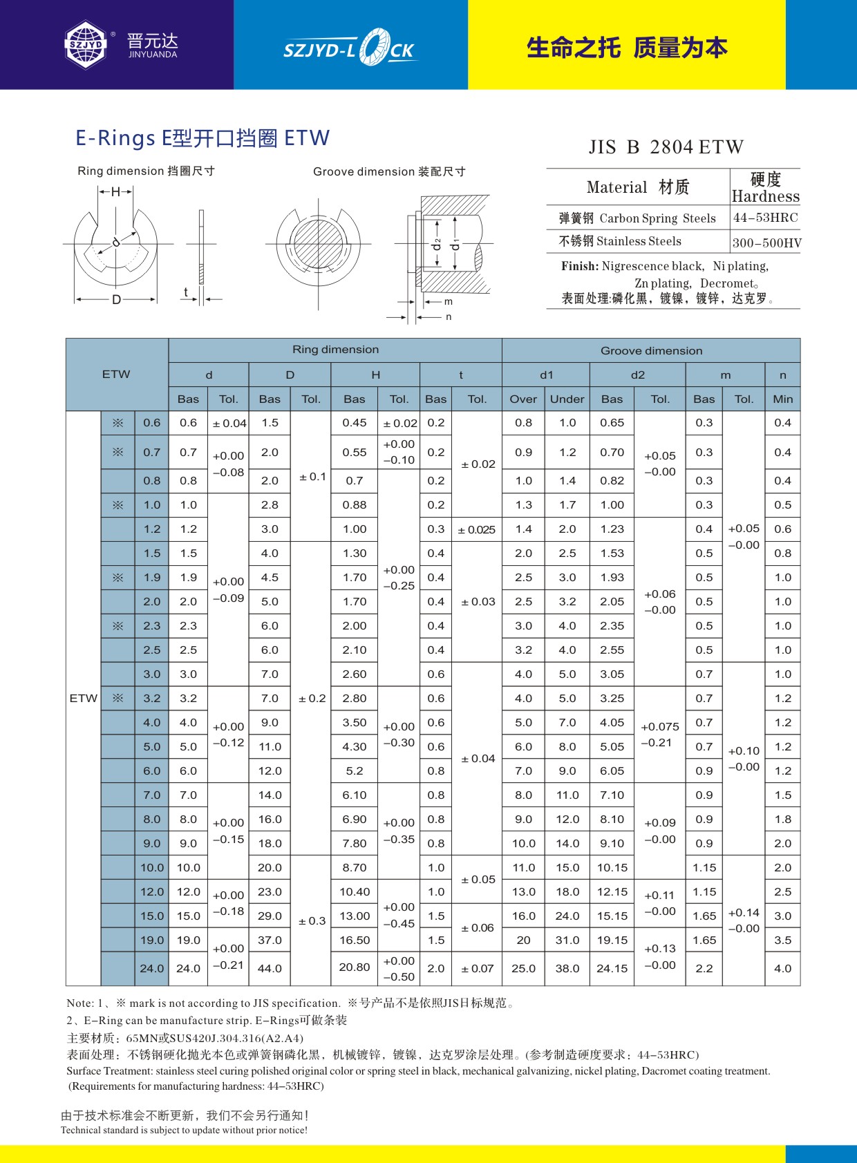 日標(biāo)JIS2804開(kāi)口擋圈,使用65MN.C67S彈簧鋼剪切沖壓,經(jīng)拋光后硬化處理,表面采用磷化黑或機(jī)工鍍鋅處理!瑞士模走絲精密模具開(kāi)發(fā),精密度可以做到M0.6規(guī)格!還可根據(jù)用戶要求訂制特殊尺寸型號(hào)!史特牢專注精品擋圈設(shè)計(jì)制造!