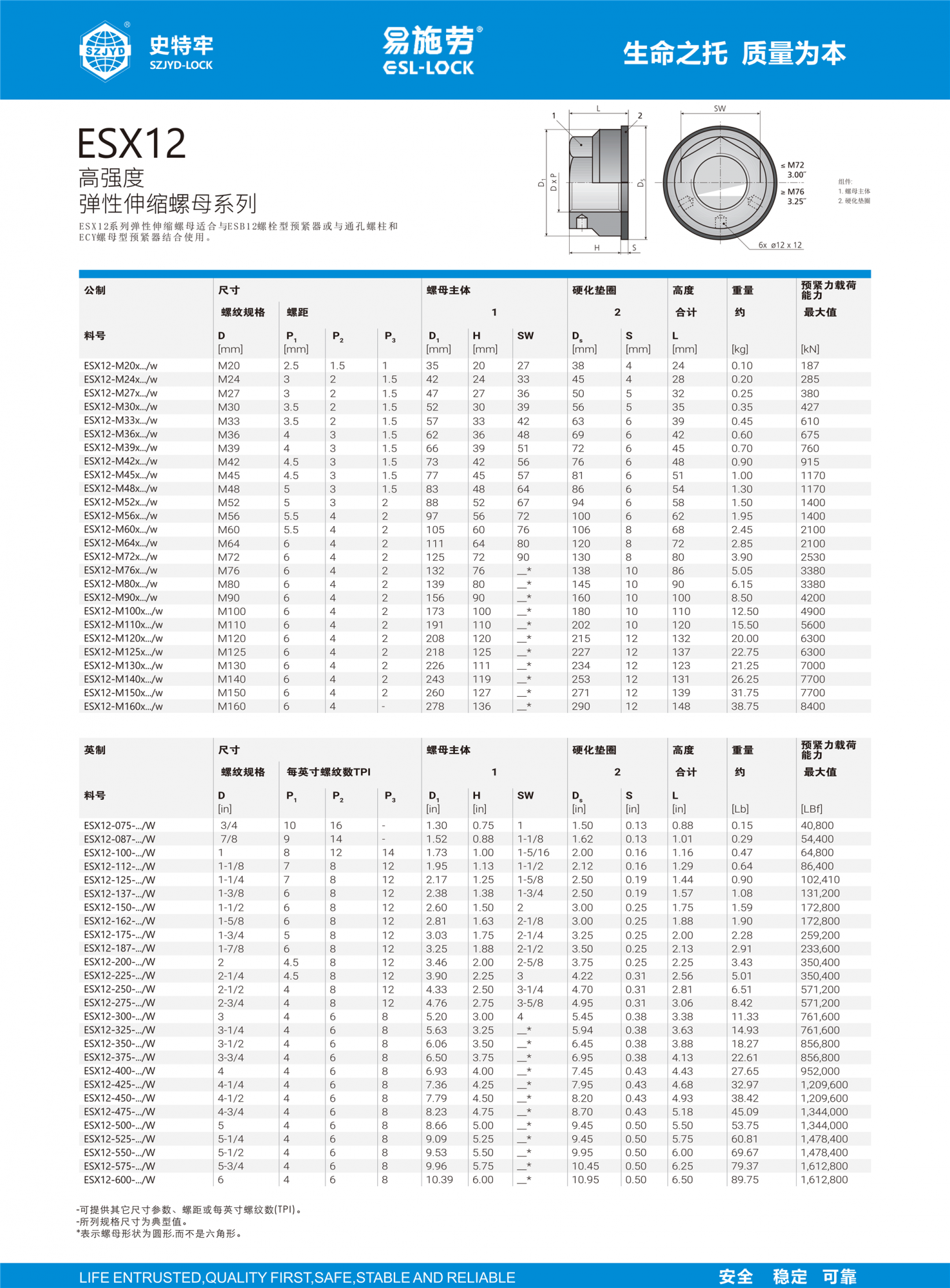 多頂推超級(jí)預(yù)緊器,可在很小空間安裝,使用簡(jiǎn)單工具即可輕松預(yù)緊,節(jié)省安裝時(shí)間,ESL-LOCK品牌易施勞超級(jí)螺母具有完全的防松鎖緊功能,可多次拆卸重復(fù)使用。特別適用于M24規(guī)格以上大型螺栓鎖緊!一擰永固,永不松動(dòng)!使用常規(guī)格為合金材料及特殊不銹鋼合金材料以及鎳基合金材料!更多了解歡迎咨詢我們.....