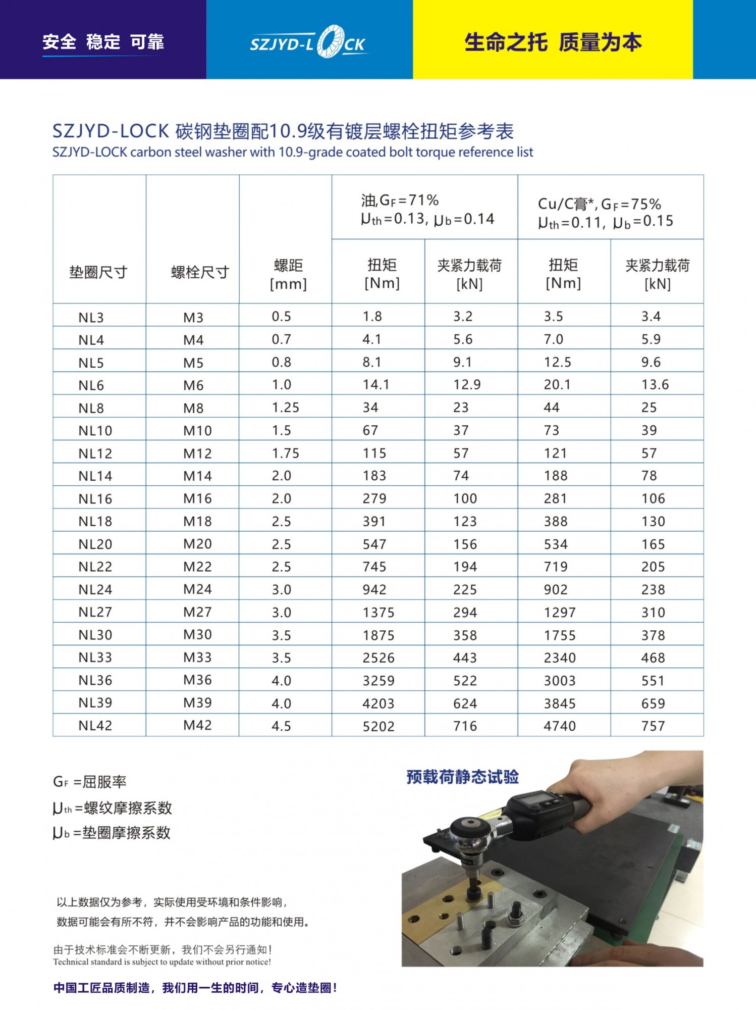 雙疊自鎖墊圈的使用:墊圈兩個大斜齒面成對粘合,目的是便於安裝和防止錯誤使用!墊圈的硬度必須高于螺栓的硬度!SZJYD-LOCK墊圈全部經(jīng)過DIN65151橫向振動測試可以達(dá)到200萬測試、其衰減率不低于70%!