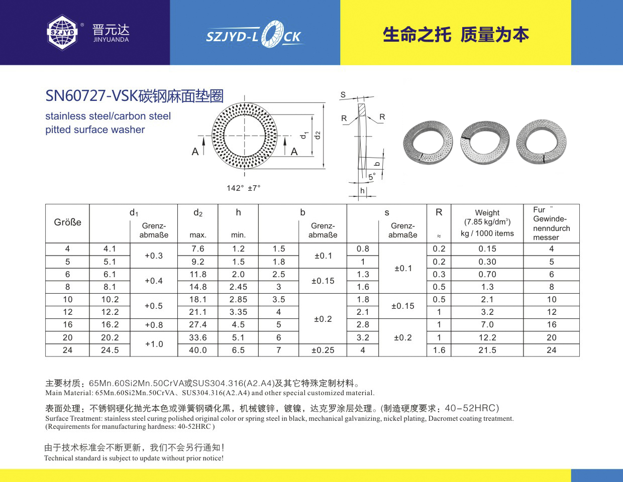 SN60727-VSK墊圈由西門子軌道交通公司設(shè)計(jì)、基本張力摩擦構(gòu)造原理的緊固防松方式。麻面花紋與螺栓鎖緊面接觸增加了鎖緊效果!