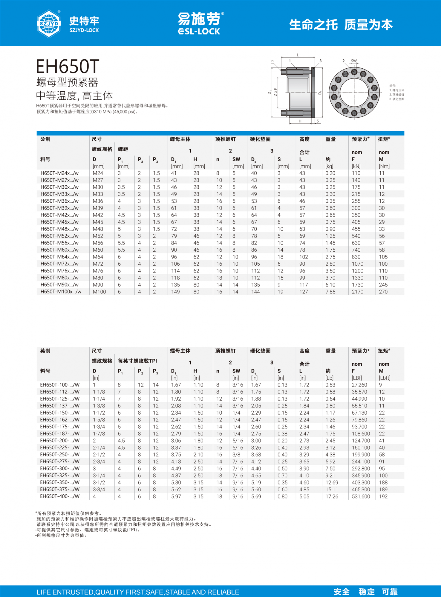 8.EH650T 螺母型預(yù)緊器中等溫度, 高主體
