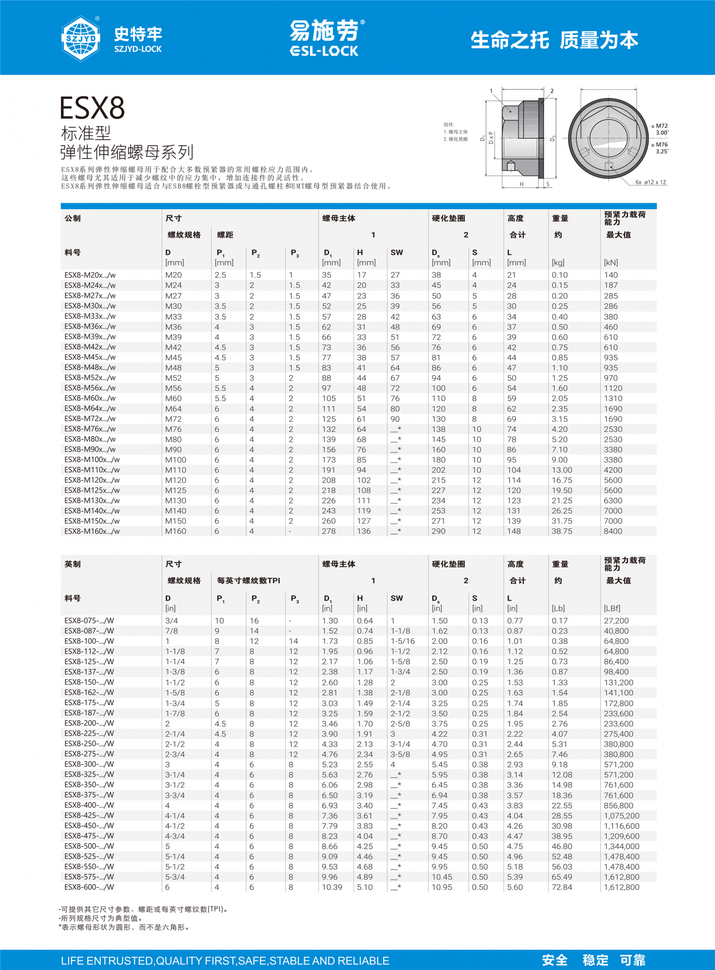 多頂推超級預緊器,可在很小空間安裝,使用簡單工具即可輕松預緊,節(jié)省安裝時間,ESL-LOCK品牌易施勞超級螺母具有完全的防松鎖緊功能,可多次拆卸重復使用。特別適用于M24規(guī)格以上大型螺栓鎖緊!一擰永固,永不松動!使用常規(guī)格為合金材料及特殊不銹鋼合金材料以及鎳基合金材料!更多了解歡迎咨詢我們.....